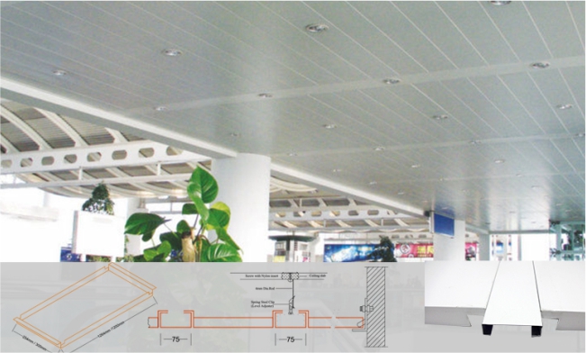 The Beam Sections are arranged in one direction to create a linear ceiling effect, and are used to support the ceiling panels and light fittings. Beams can be produced in a verity of width 75mm, 100mm, 150mm and tiles are generally supplied 254mm wide to standard length.